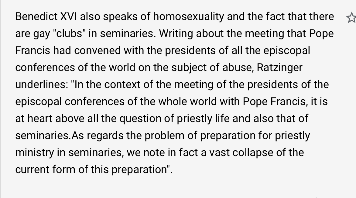 This is part of why Benedict stepped down when he did. He saw the direction and, in light of the abuse scandals and lack of support he received in addressing that, could read the writing on the walls. This is stuff that should be absolutely shaking the Catholic Church to its core. You should be hearing about all of this in the same manner we heard about the abuse and molestation. But we arenāt⦠because this is the direction modern Christianity is going. And no one in the mainstream or circles of elites running things the world over want to bring any of it to light. A weak church means weak people. Weak people donāt stand up for justice and morality.